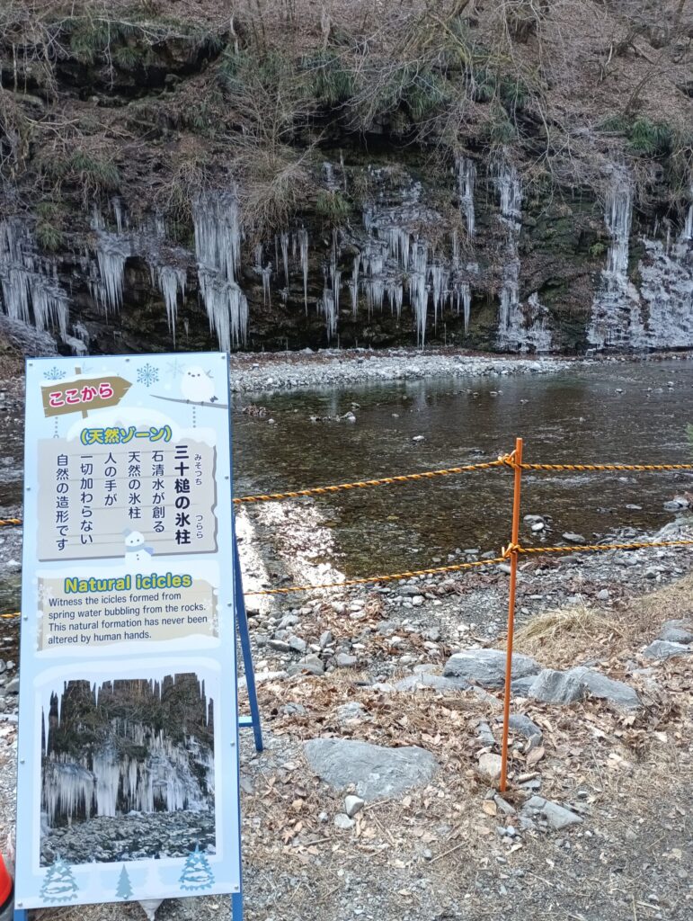 三十槌の氷柱の特徴は荒川の目の前で天然と人工の氷柱を見ることができることです。