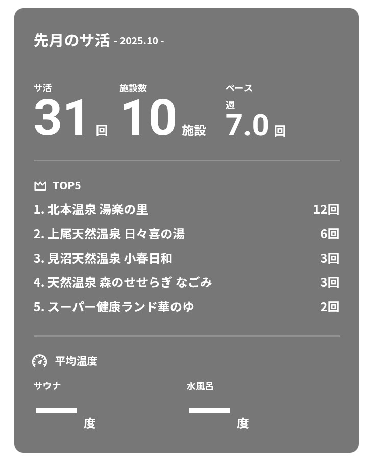 毎日の風呂活&サ活を10点を持ち点として減点方式で採点