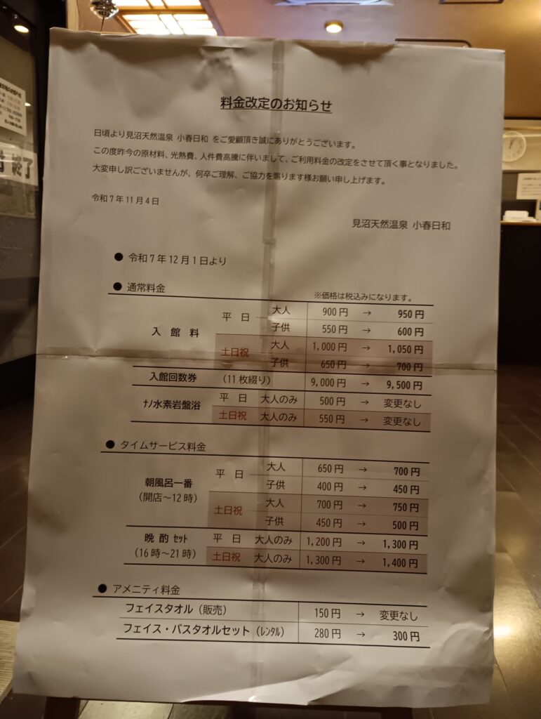 2025年11月28日(金)見沼天然温泉 小春日和(埼玉県さいたま市見沼区)