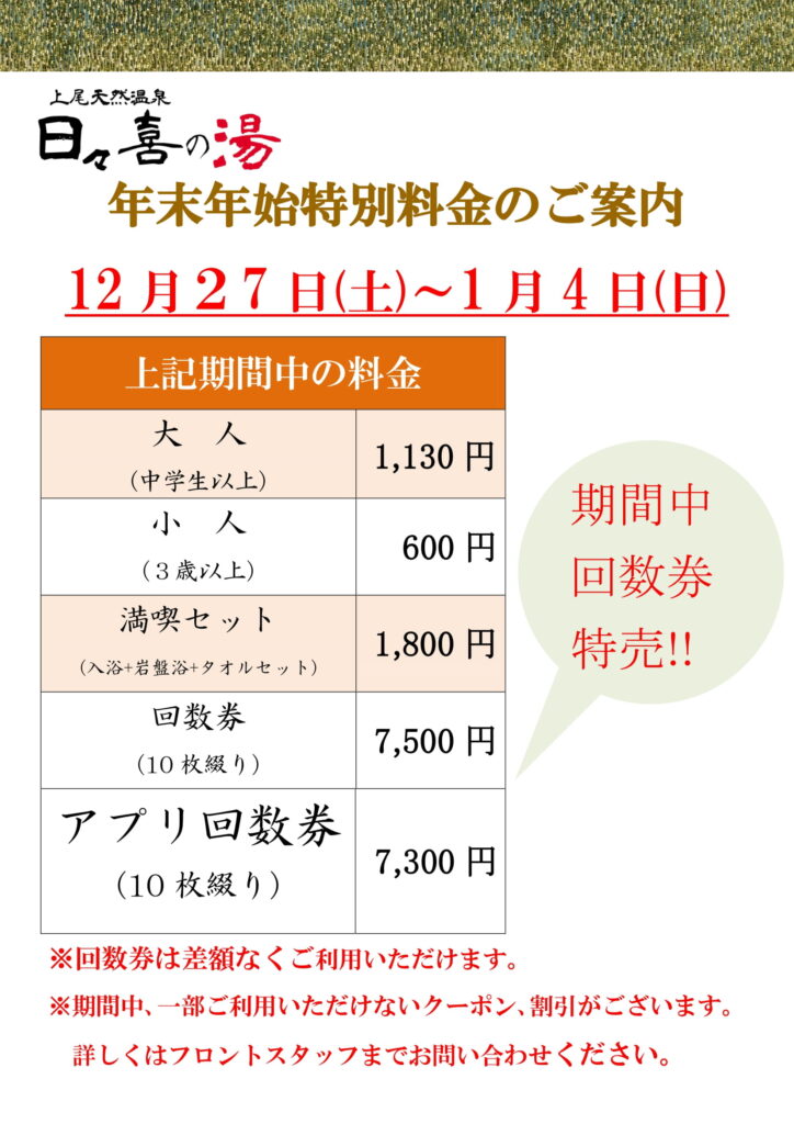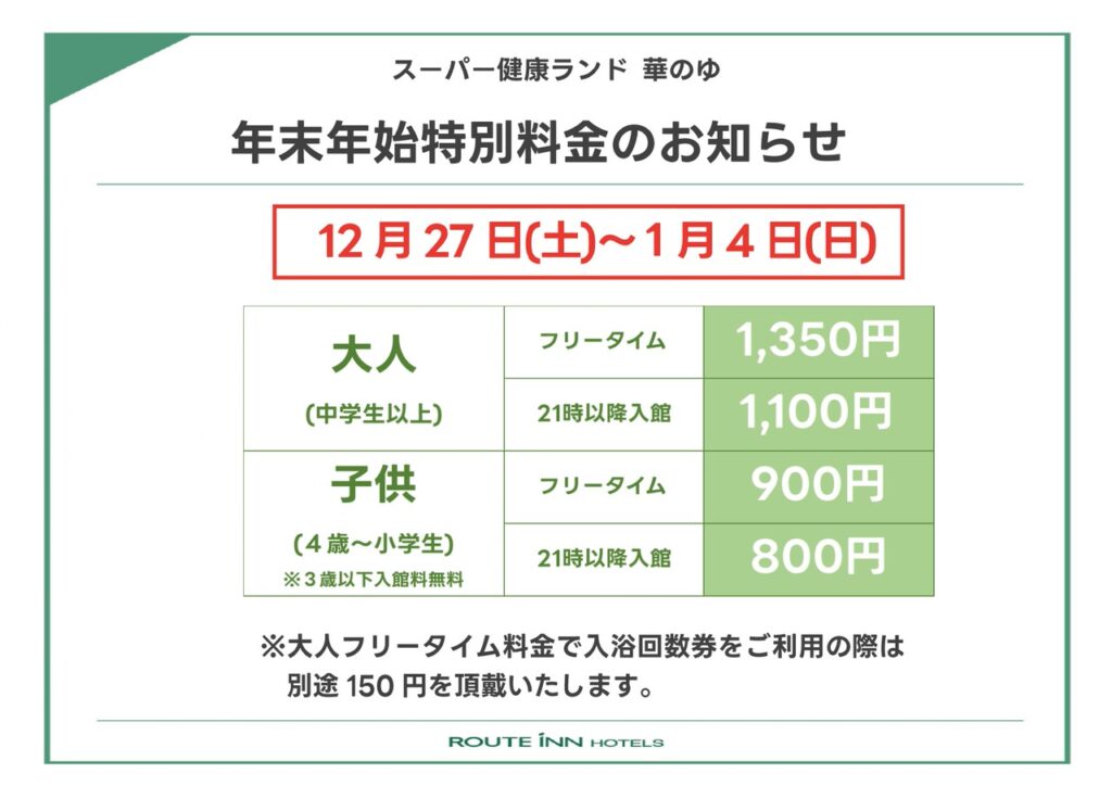 2026年1月1日(木)スーパー健康ランド 華のゆ(埼玉県羽生市)