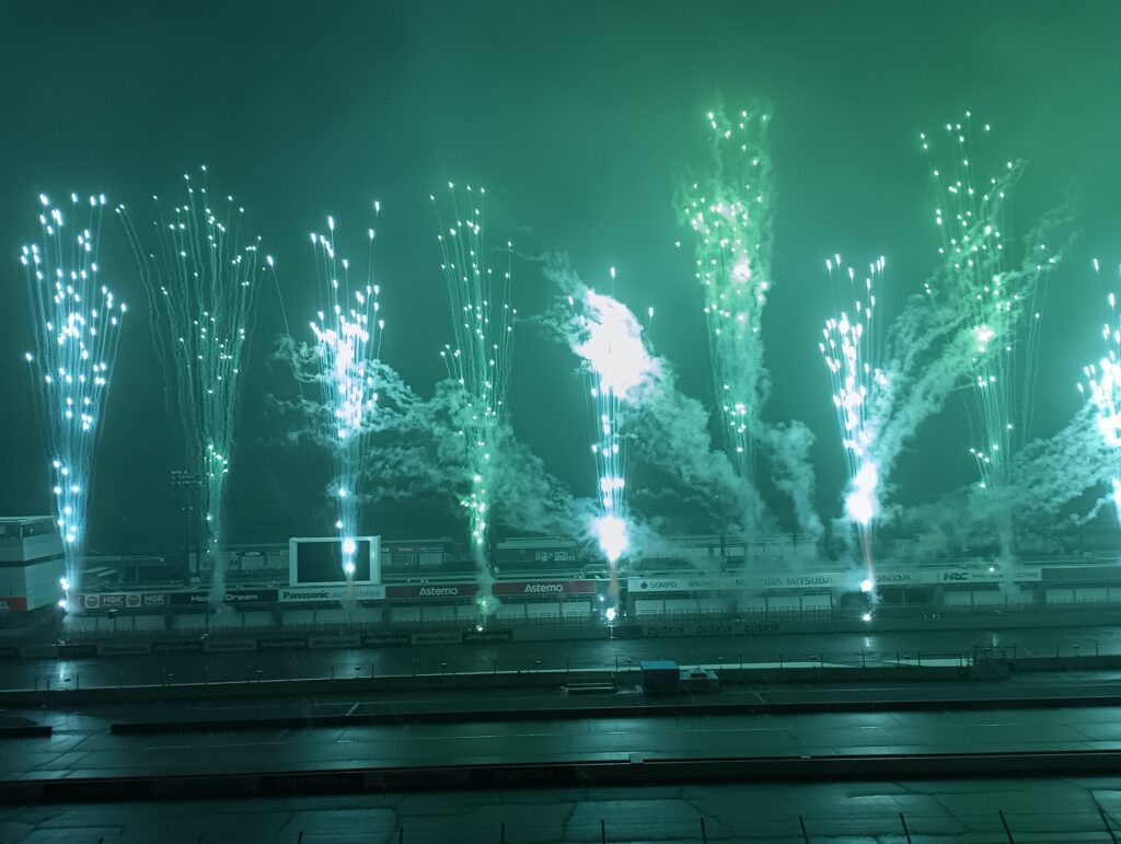 雪の中、モビリティーリゾートもてぎの冬花火。