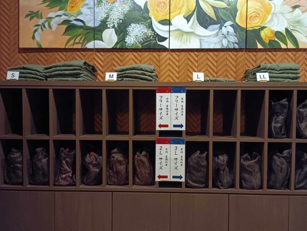 岩盤浴着のある棚の横にはアイスの入った小型冷凍庫があります。