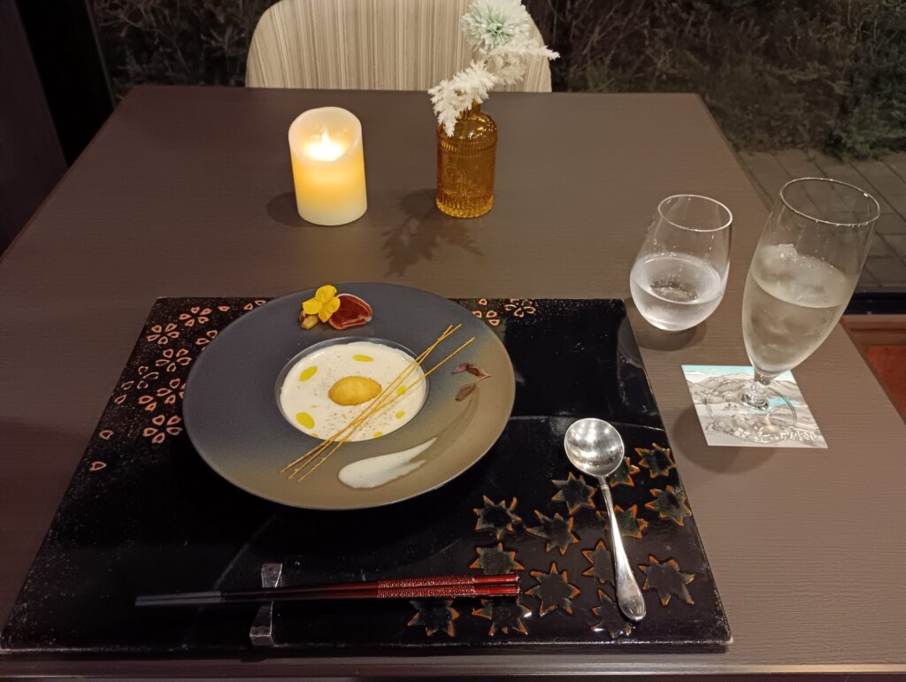 季節野菜や地元の食材を盛り込んだ夕食の創作コース料理、地元食材を使ったメニューや鍋料理等の身体に優しい自然派創作メニューが味わえる朝食で心身元気になりました。
