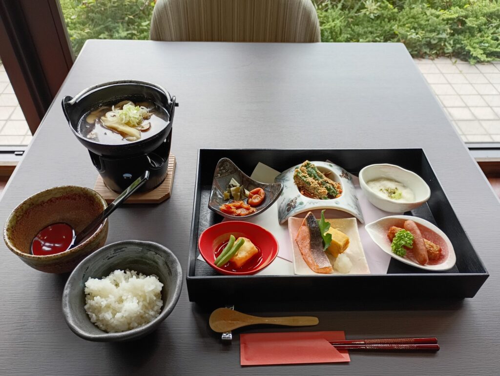 今回は朝食付きの宿泊プランにしたので、朝の荒川を眺めながら朝食をいただきました。